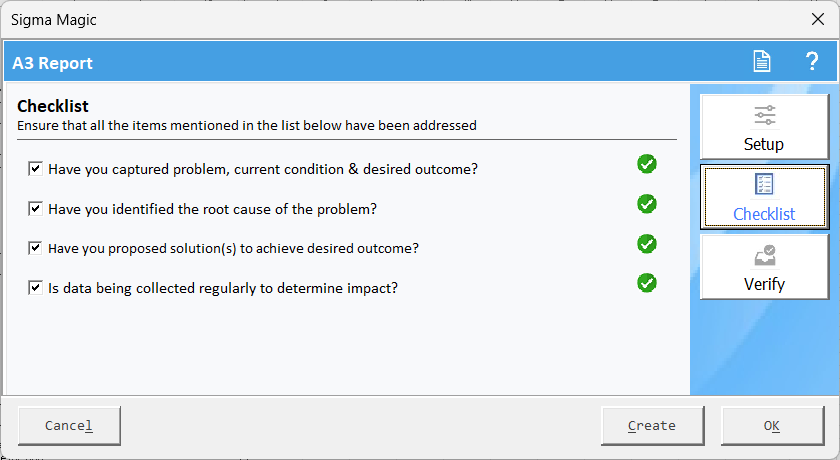 If you click on the Checklist button, you will see the following dialog box. Ensure that the items mentioned in checklist should be marked.