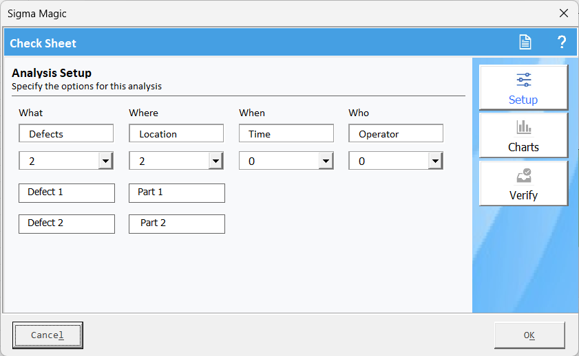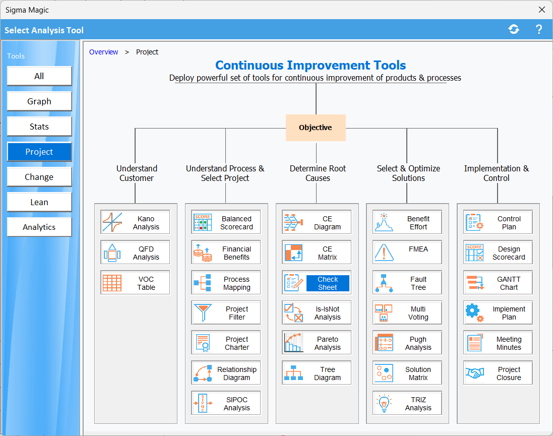 What is a Check Sheet A Check Sheet is a tool in Sigma Magic used to collect data in a structured manner for quality control and process improvement. It is commonly used to track defects, errors, or occurrences over a period. What types of Check ...
