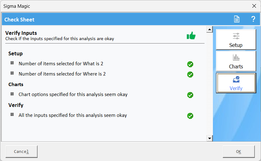 Click theVerify tab to ensure all the inputs are okay and shown in a green checkmark.
