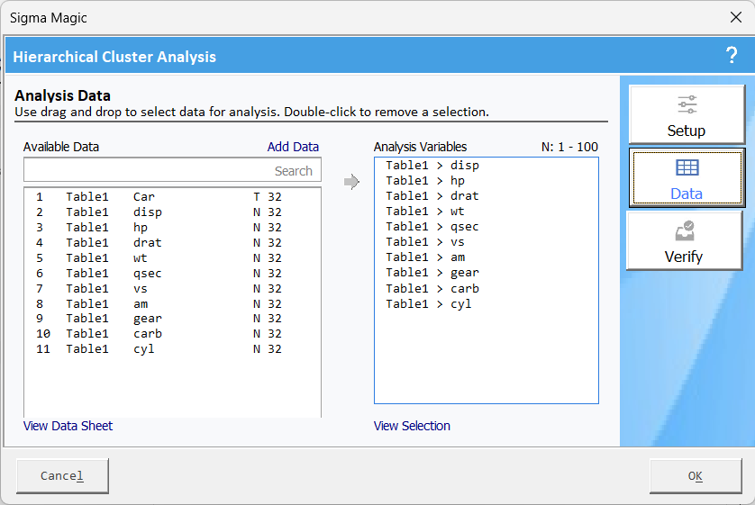 Problem Statement We have collected data on several different models of cars with respect to several parameters. Use a Kmeans analysis to cluster the different vehicles together. How to perform analysis Step 1: Open Sigma Magic Click on the Sigma ...