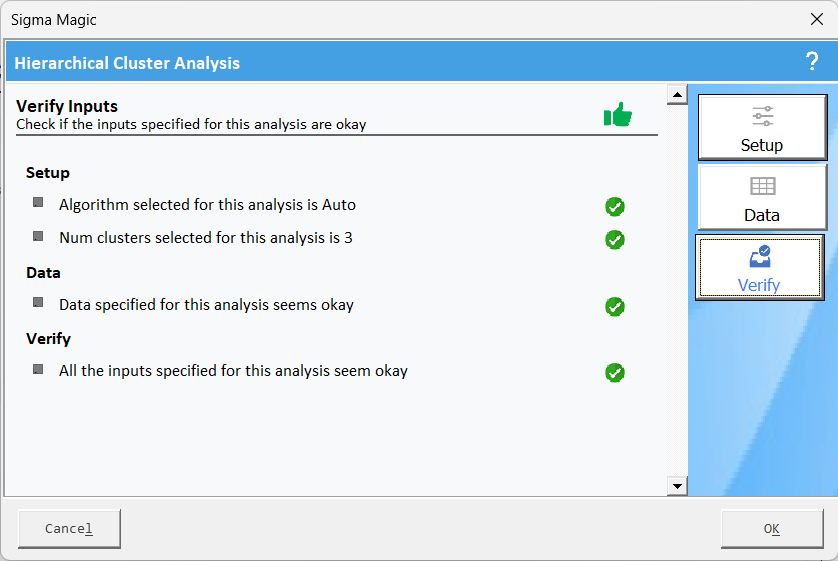 Click the Verify tab to ensure all the inputs are okay and shown in a green checkmark.