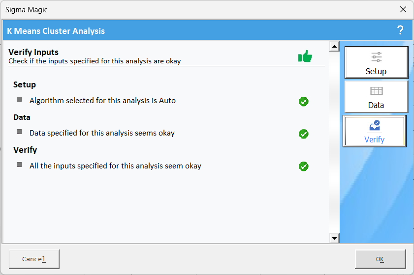 Click the Verify tab to ensure all the inputs are okay and shown in a green checkmark.