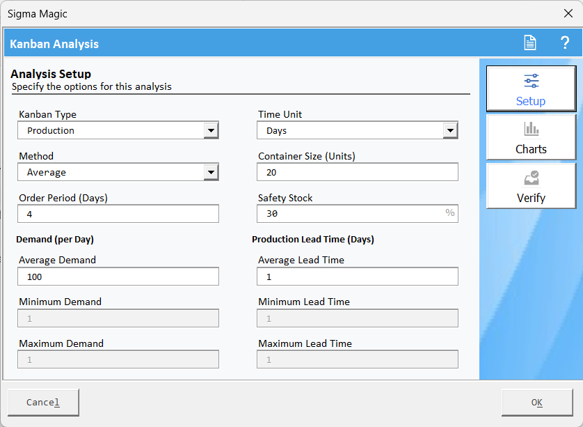 - Container Volume: The unit capacity of Kanban container holds 20.