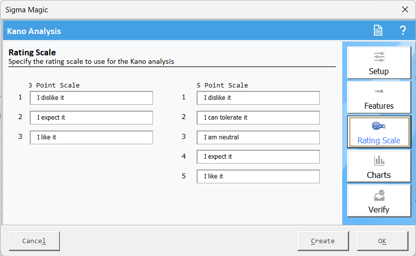 Click on Rating Scale and specify the 3 point rating scale and 5 point rating scale