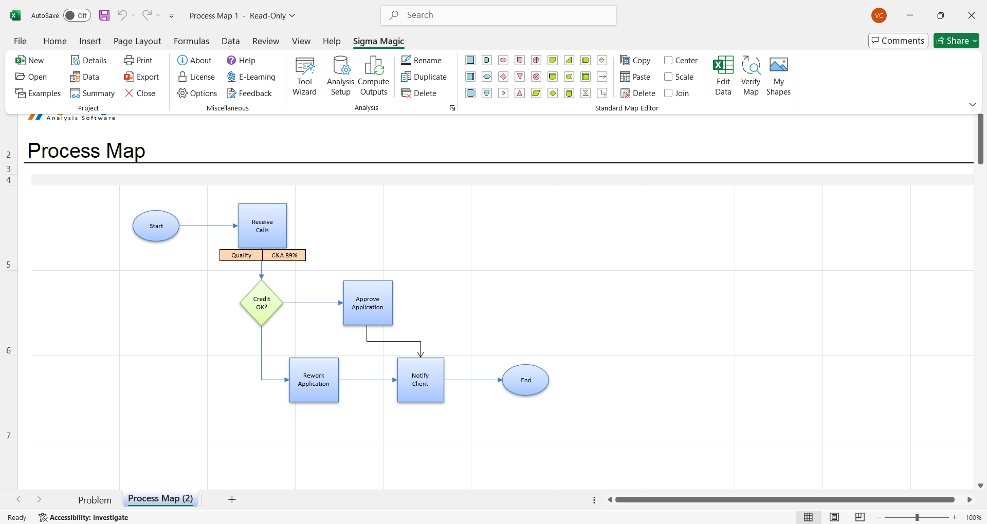 Create a process map for the credit approval process. The key process steps are shown below. Feel free to add other steps as appropriate.