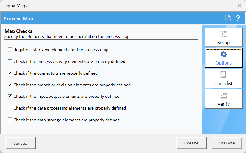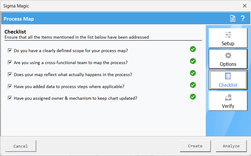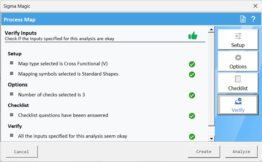 Finally, click on Verify tab and then click Analyze to ensure all the inputs are okay and shown in a green checkmark.
