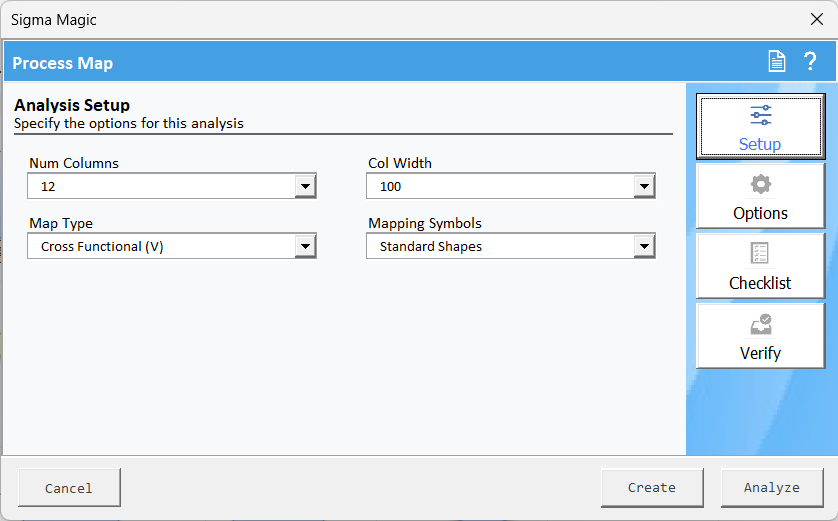 A new worksheet will be added to your workbook. Analysis Setup will be automatically opened, in the setup tab specify the following details.