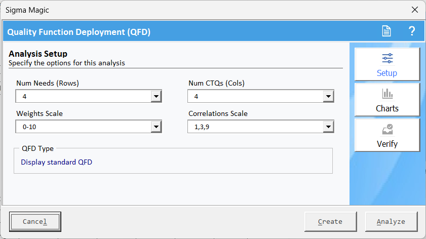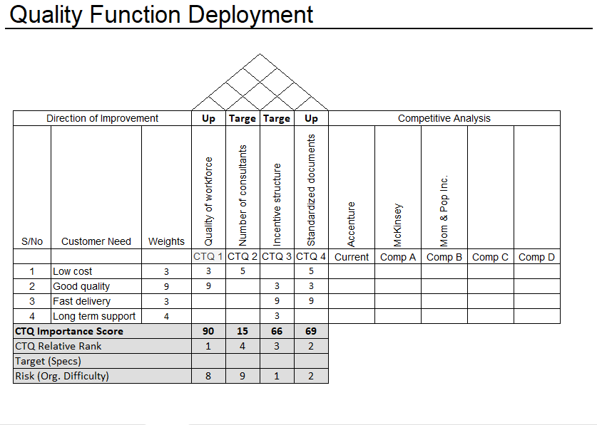 - For each technical requirement, a target specification is used to map it against customer needs.