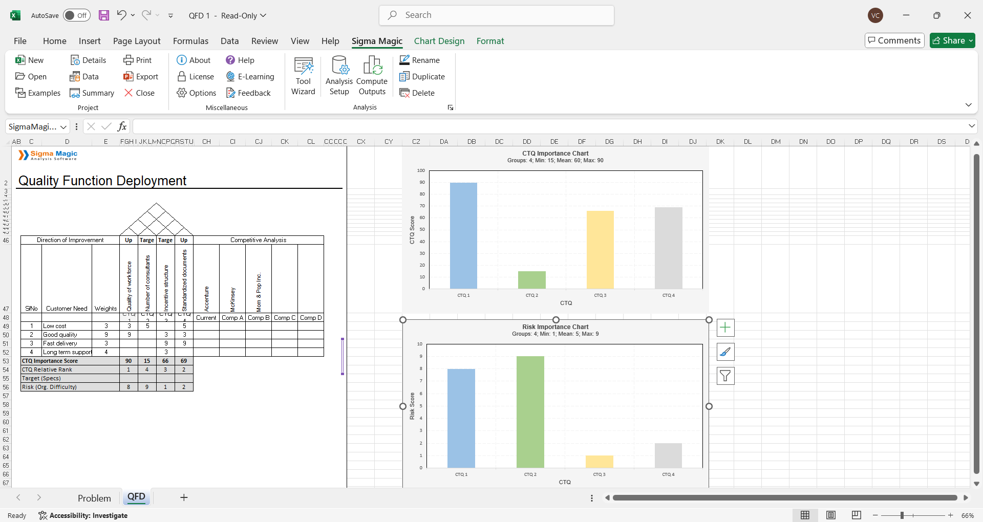 - The risk score is the highest for CTQ 1 & CTQ 2, which means they are the most difficult to implement.