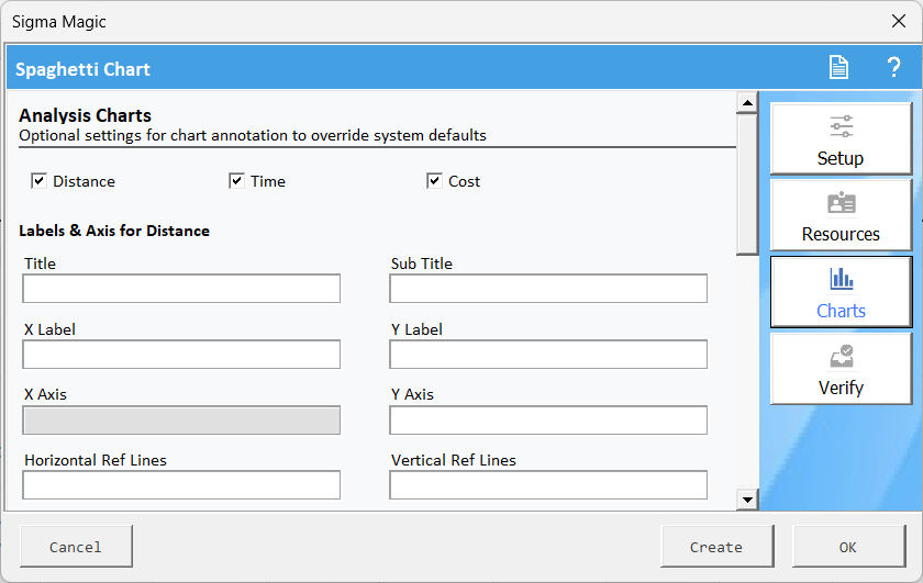 If you need to make changes to the charts, click on the Analysis Setup and then the Charts tab. You can specify the following details,