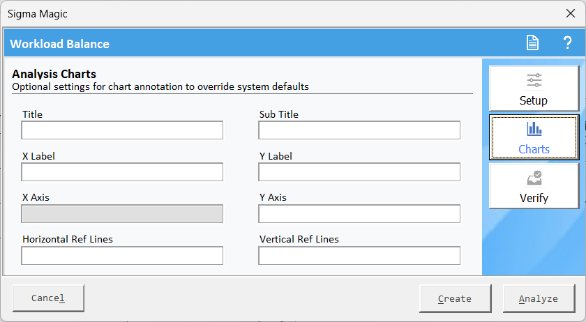 If you need to make changes to the charts, click on the Analysis Setup and then the Charts tab. You can specify the following details,